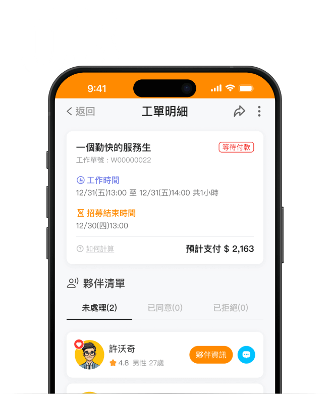 6. 查看申請夥伴的綜合評價與出缺勤數據,並決定同意或婉拒申請