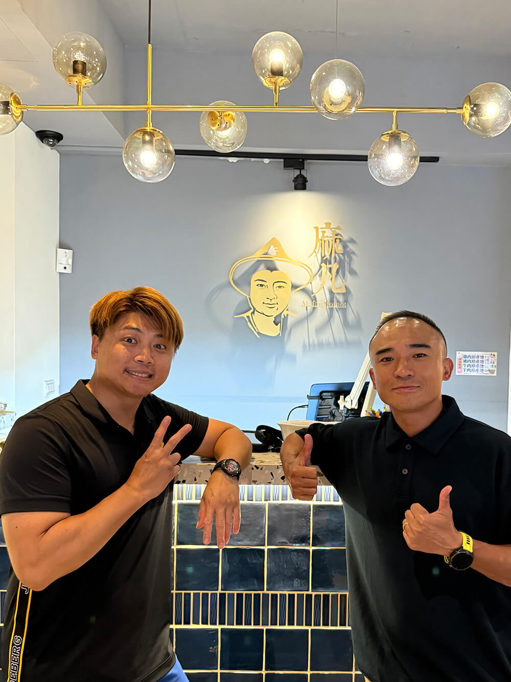 店內裝潢走輕奢簡約風格,金色吊燈映出溫潤光線,牆上滿是名人簽名,低調卻充滿存在感。
