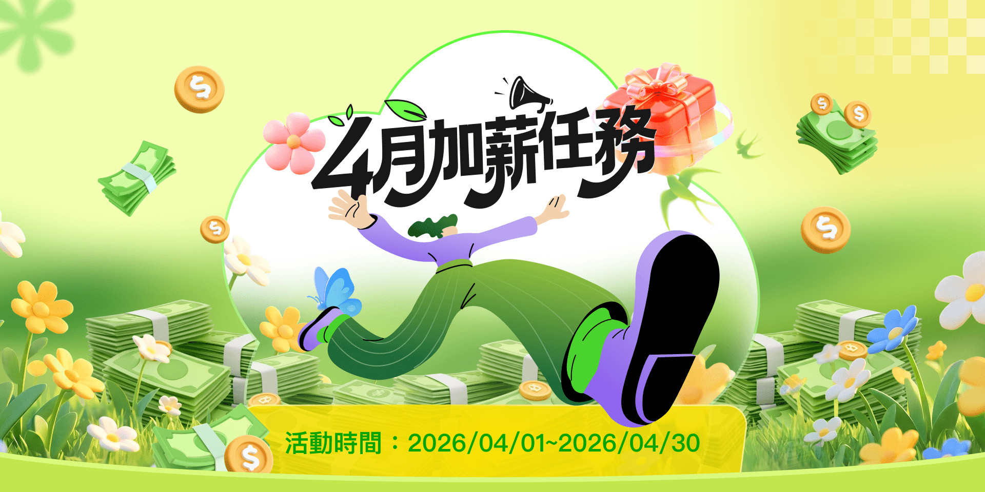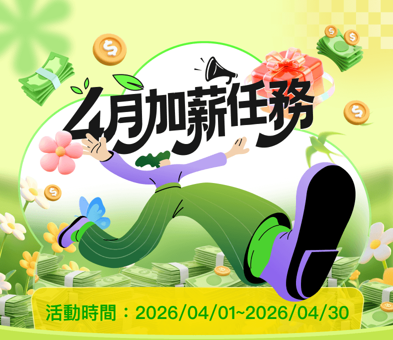 活動計算時間為 2026/04/01 ~ 2026/04/30。(以工作開始時間為準,未遇特殊/突發狀況的工作,結算時間最晚在次月的4日之前)